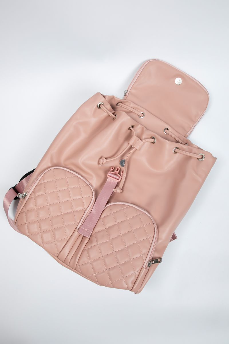 Embrace chic functionality with the Quilted Flap Synthetic Leather Backpack crafted from high quality synthetic leather for a smooth and stylish look Featuring a quilted flap and dual front zipper pockets it combines elegance with practical storage The drawstring and buckle closure keep your belongings secure while the spacious interior fits all your daily essentials Adjustable padded straps ensure comfort making it the perfect choice for work travel or casual outings