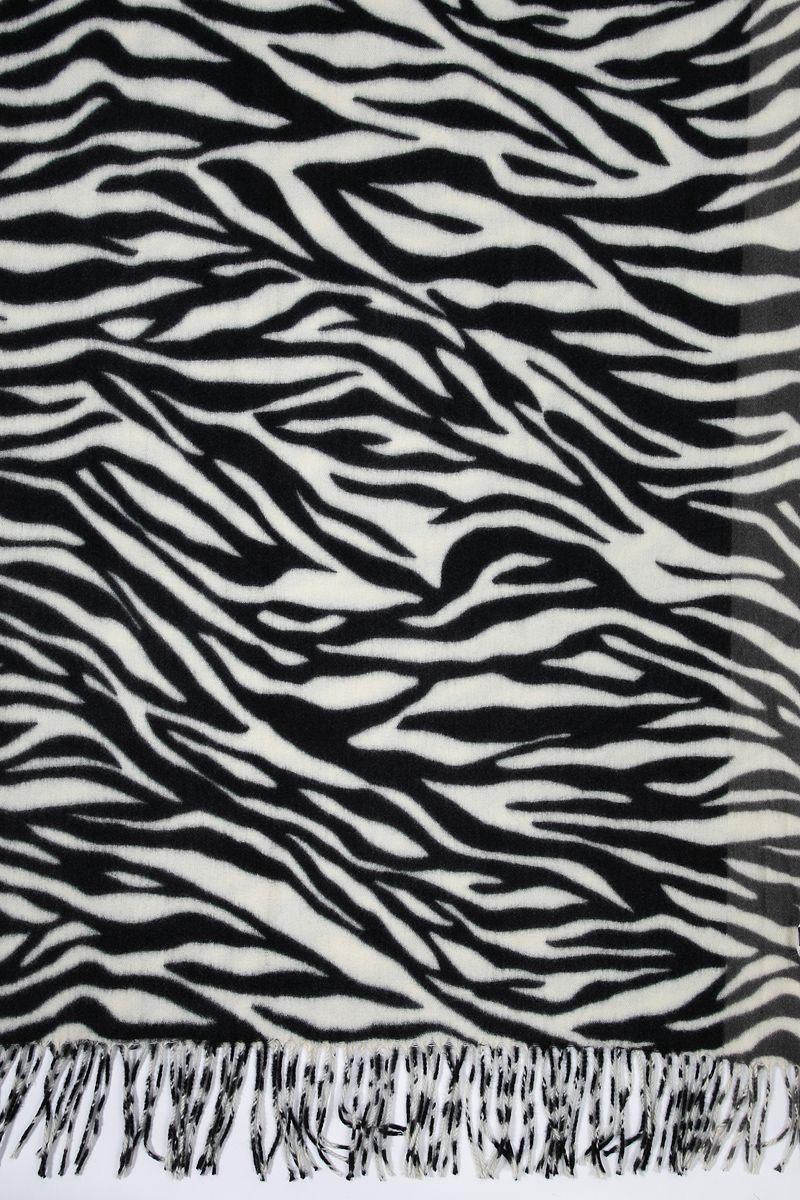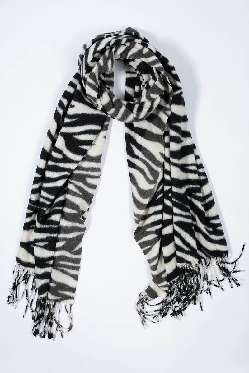 A soft and cozy scarf featuring an animal inspired pattern with tasseled edges. Perfect for adding a stylish touch and extra warmth to your cold weather looks.