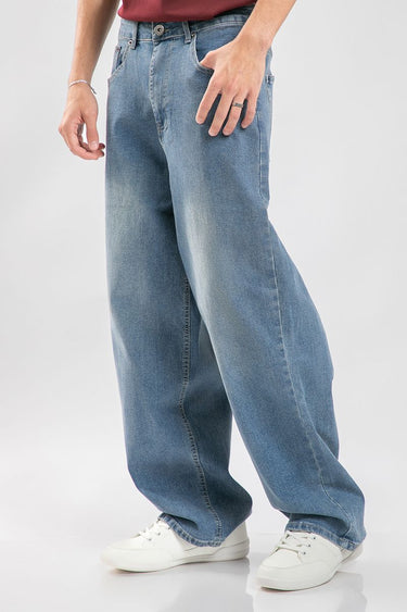 Relaxed, bold, and effortlessly cool. These baggy-cut denim pants for men feature a washed effect for a vintage-inspired look. Designed with front and back pockets and finished with a button and zipper closure at the waist, they bring a street-style vibe to your everyday wardrobe.