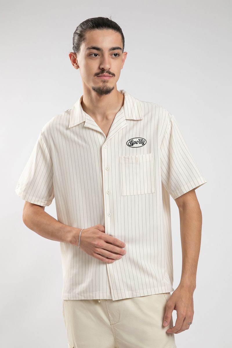 Channel classic campus vibes with this varsity-inspired short sleeve men’s shirt. Featuring a striped pattern, small front embroidery patch, front chest pocket, and full button-down closure with a classic collar. A smart yet laid-back piece for everyday wear with a collegiate twist.