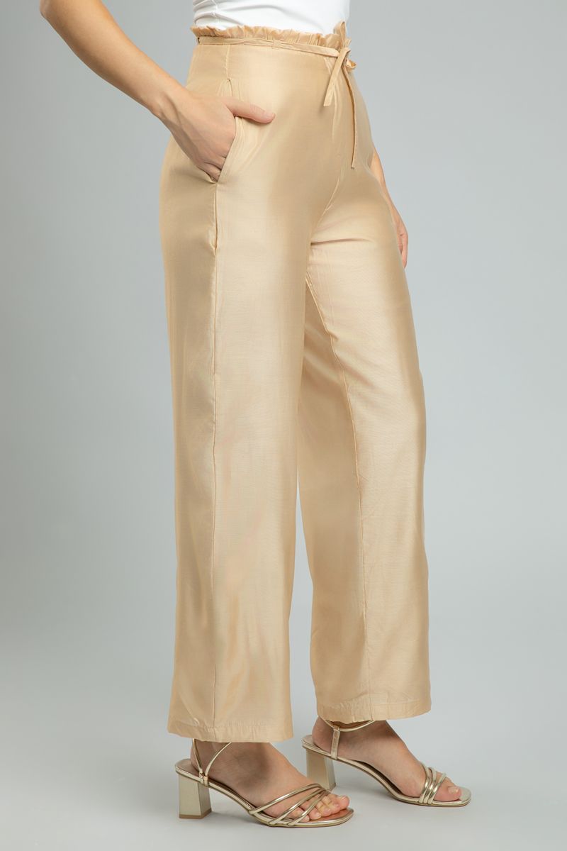Elegant Women'S Wide-Leg Satin Pants With Ruffled Waist
