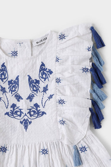 decorated with an embroidery pattern on full design and tassels details on sleeves