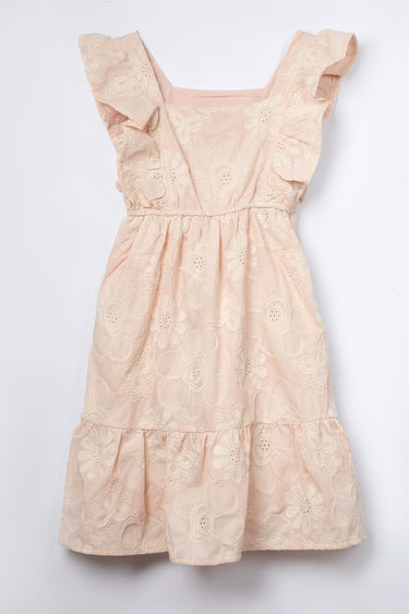 girls dress with perforated embroidery