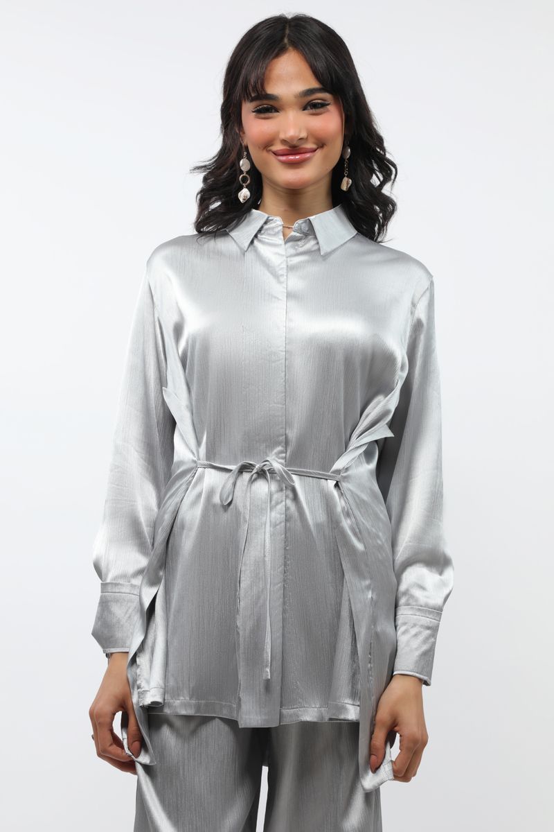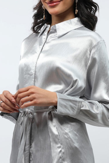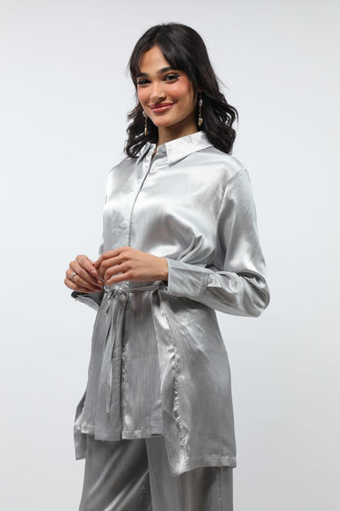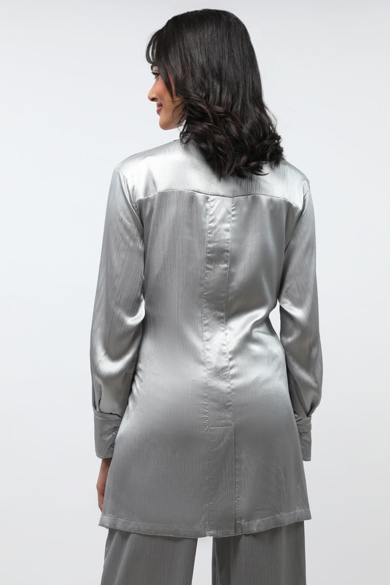 Metallic Pattern Longline Women Shirt