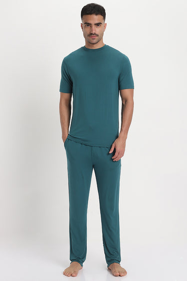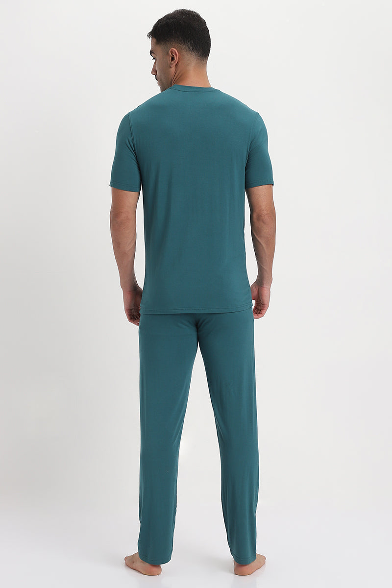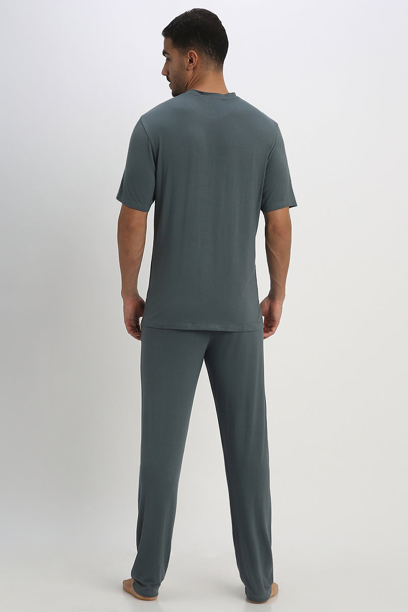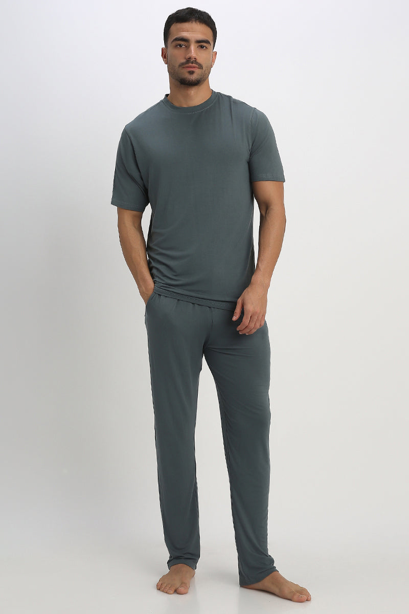 Men Two Piece Loungewear Pyjama Set Solid T-Shirt and Pants