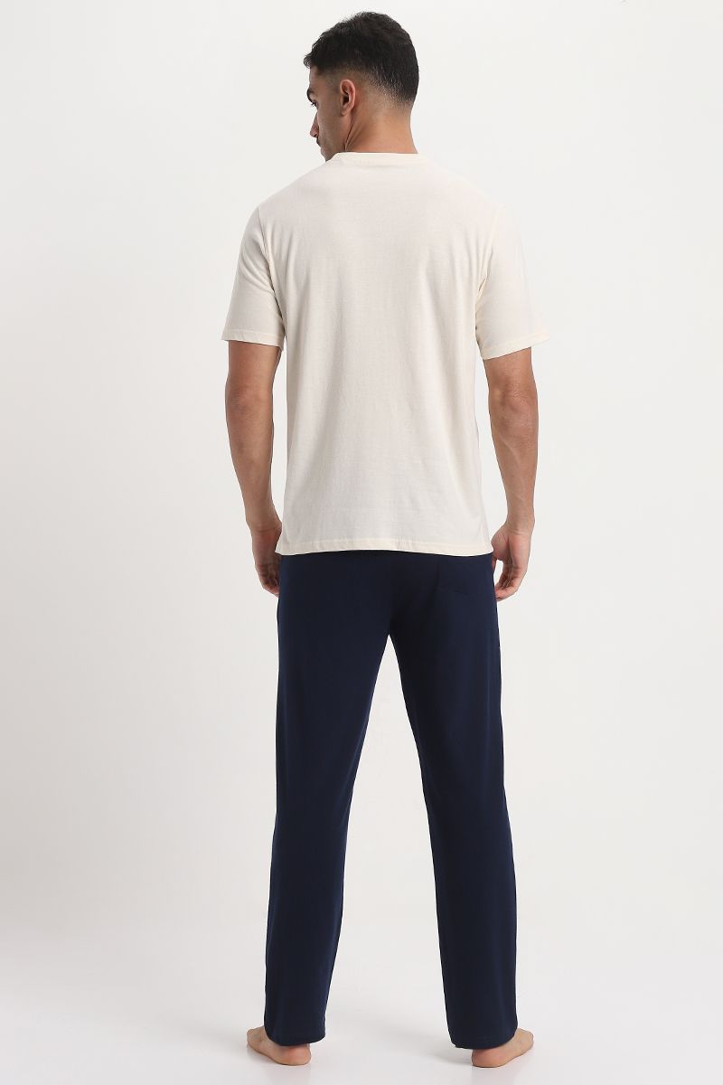 Men Two Piece Loungewear Pyjama Set Solid T-Shirt and Pants