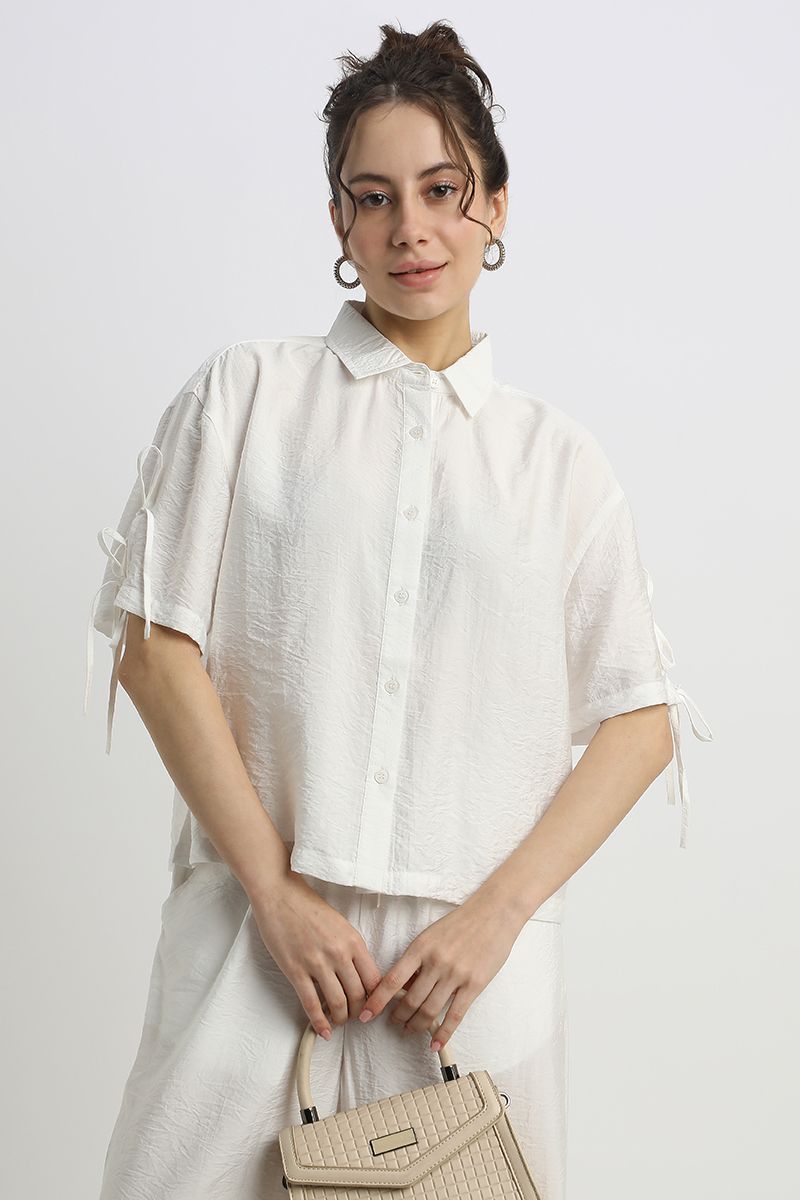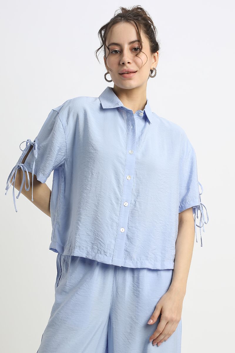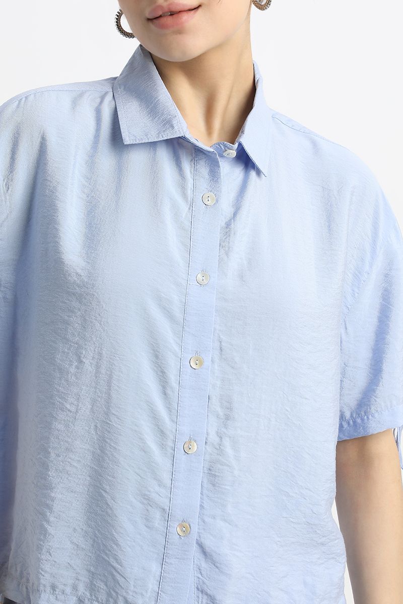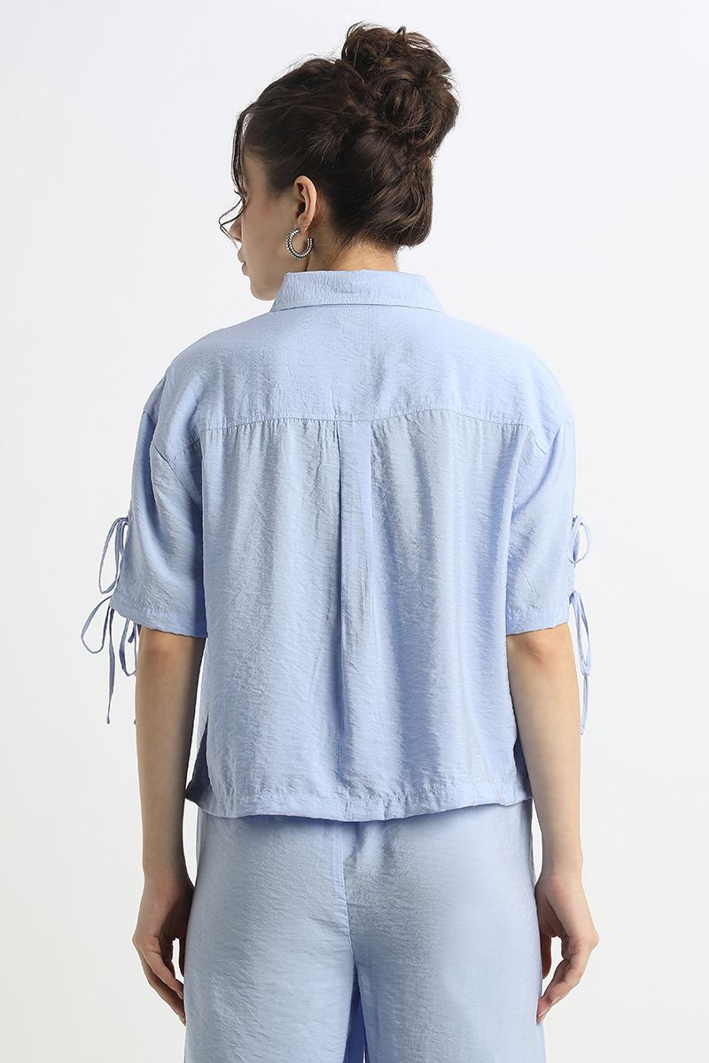 Womens Cropped Shirt Solid Color, Sleeve Drawstrings