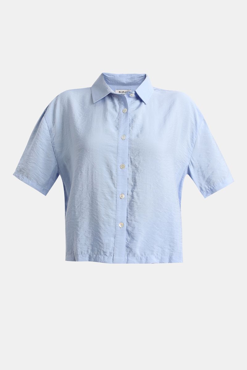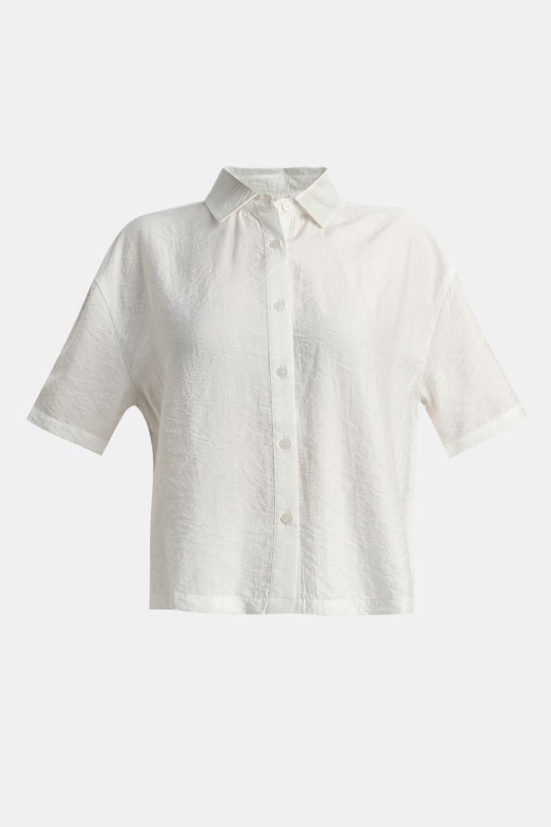 Fresh and feminine, this cropped women’s shirt brings a playful twist to a timeless style. Designed in a solid color with short sleeves and adjustable drawstrings, it features a classic collar and front button closureâ€â€perfect for casual looks with a chic edge.