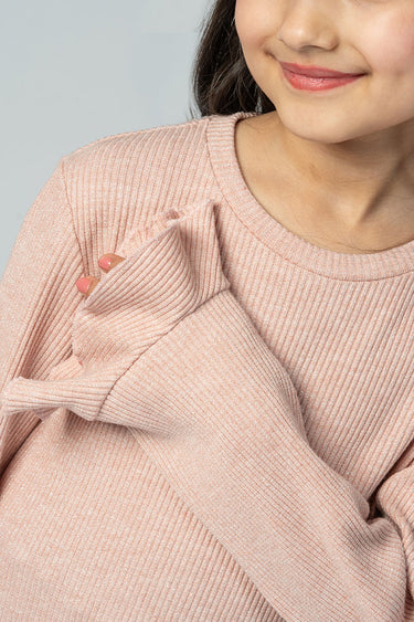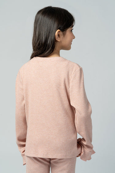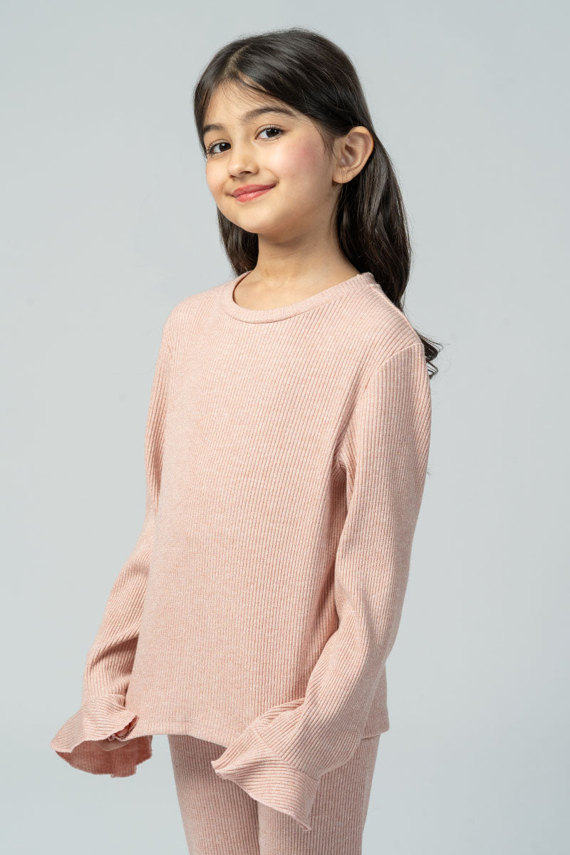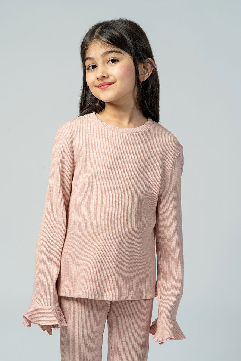 Kids ribbed top designed with long sleeves and soft ruffle cuff details for a refined yet playful look. Crafted from a comfortable fabric that allows ease of movement throughout the day. Easy to style with pants or skirts for everyday or polished outfits.