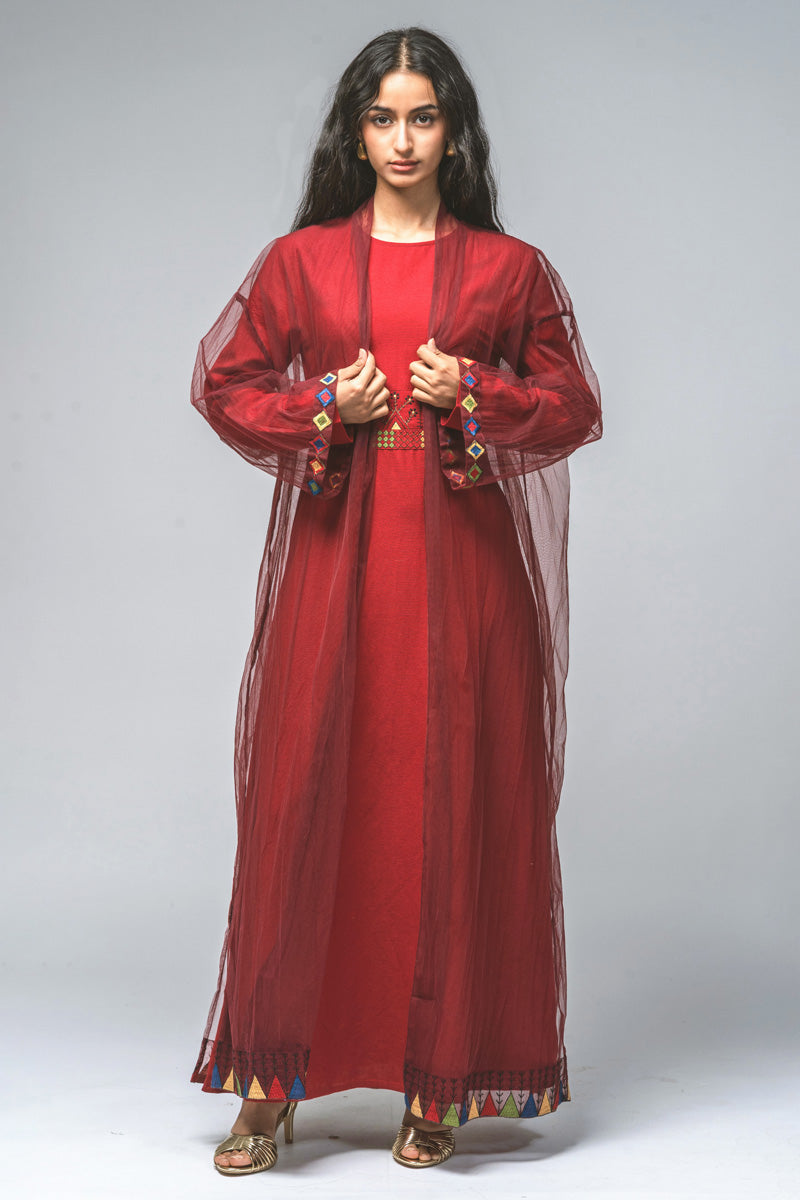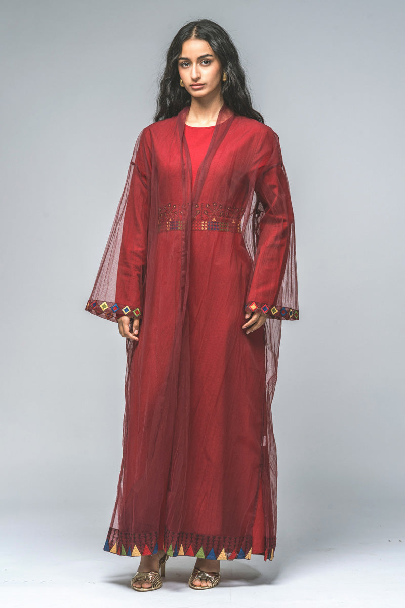 Embroidered Sheer Outer Abaya