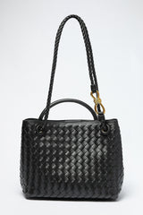 Elegant handbag crafted with a refined woven texture and structured silhouette Designed with a top handle and braided shoulder strap accented by metallic hardware Offers a balanced blend of sophistication and everyday practicality A timeless piece suitable for both day and evening looks