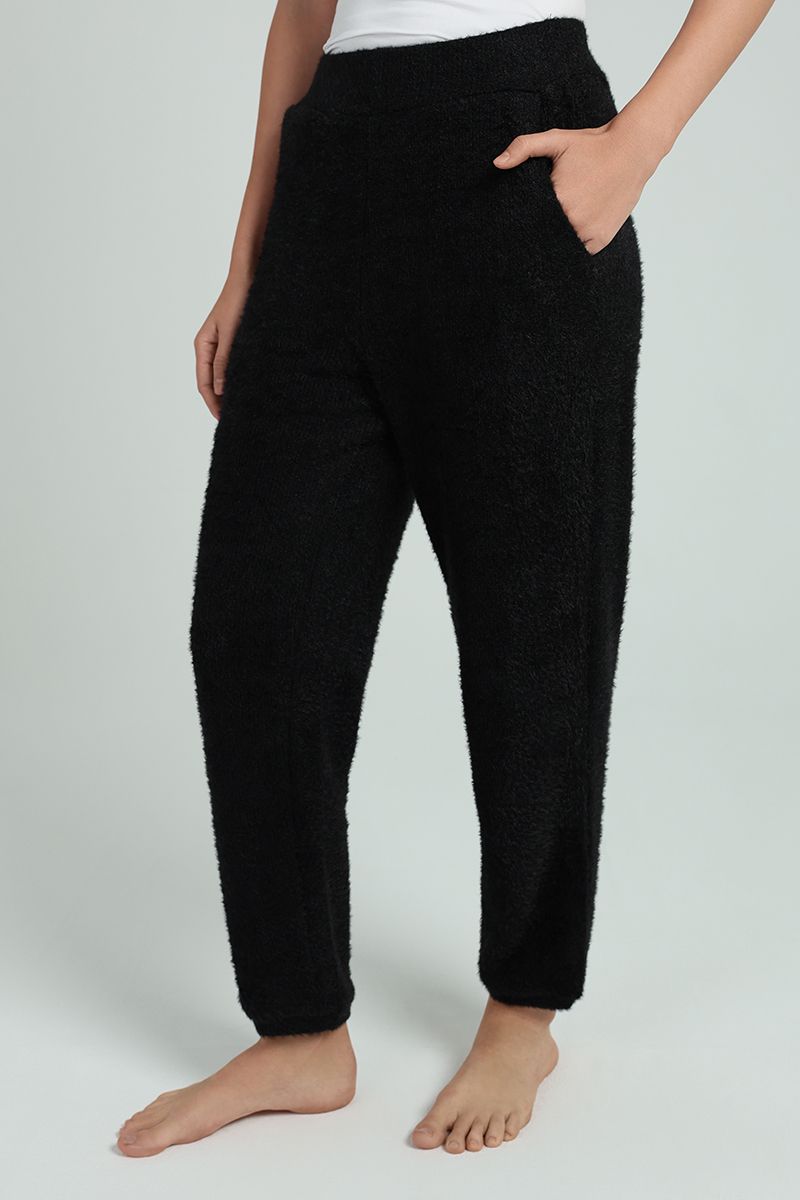 Cozy fuzzy loungewear pants featuring an elastic waistband and side pockets Designed for ultimate comfort and warmth perfect for home lounging