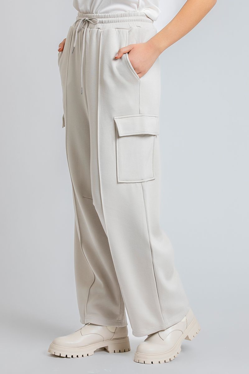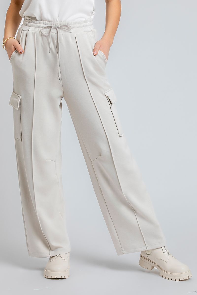 Womens wide leg pants with modern relaxed design elastic waistband adjustable drawstring and multiple pockets ideal for everyday or travel wear