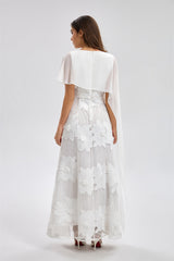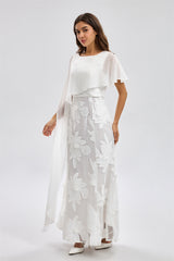 Women's maxi dress designed for refined occasions featuring a flowing silhouette with cape style overlay and embroidered detail Structured yet soft fabric provides elegant movement and comfortable wear Suitable for weddings formal events and special gatherings Easy to style with minimal accessories for a graceful polished look Ideal choice for women seeking modest elegant fashion suitable for Saudi occasions