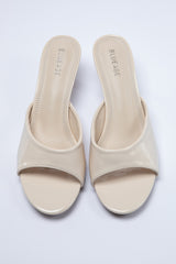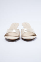 Refined slip on sandal designed with a clean open toe silhouette and a comfortable mid heel Offers a smooth structured shape that enhances everyday and occasion looks Easy to wear design suitable for repeated styling across multiple outfits A versatile footwear essential for modern wardrobes