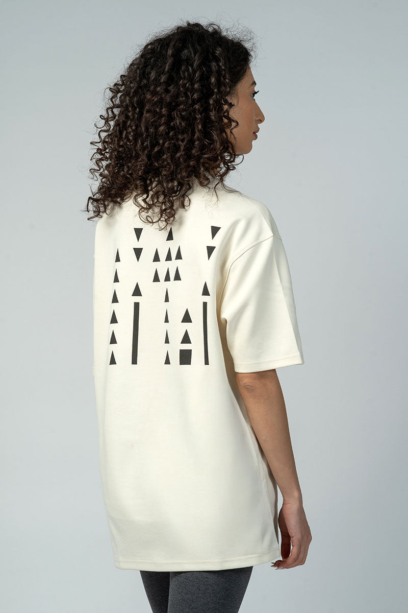 Unisex t-shirt designed with a relaxed oversized fit suitable for both women and men. Features a clean graphic print that adds a modern touch while keeping a minimal look. Ideal for everyday wear and easy to style with different outfits.