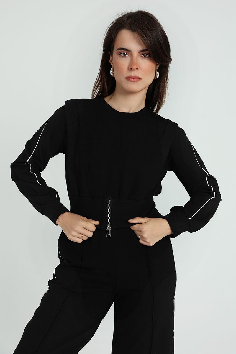 A modern sweatshirt featuring long sleeves and a short zipper detail at the waist. Designed for a relaxed and stylish look, this piece combines everyday comfort with a sporty edge.