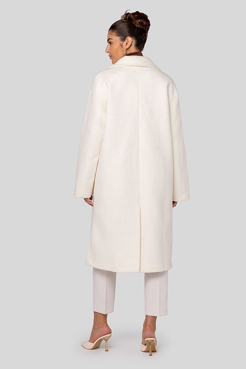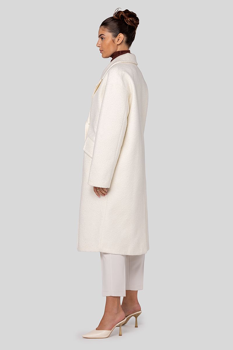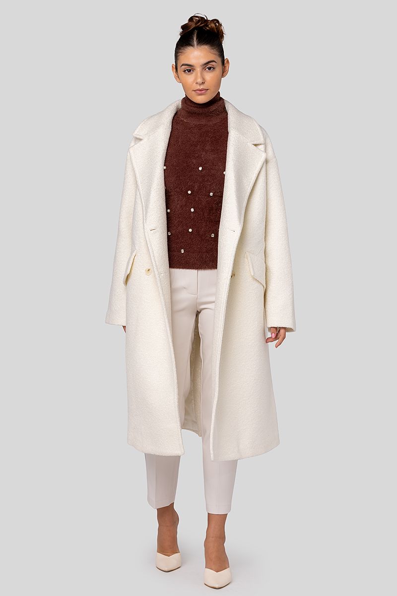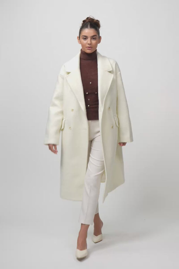Elegant long coat crafted from soft wool fabric, featuring wide lapel design and double-breasted button closure for a timeless look. Finished with practical front pockets, perfect for staying stylish and warm during the colder season.