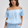 Women's top designed for comfortable everyday wear featuring an off shoulder neckline with short sleeves and a relaxed fit Soft lightweight fabric offers ease of movement and a flattering drape Suitable for daily outings casual looks and warm weather wear Easy to style with pants skirts or matching bottoms offering versatility and comfort Ideal choice for women seeking modern feminine fashion suitable for Saudi lifestyle