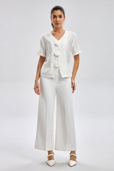 Elegant pants designed with a wide leg silhouette and a clean structured fit. Features a smooth finish and tailored lines that create a refined everyday look. Easy to style across modern wardrobes.