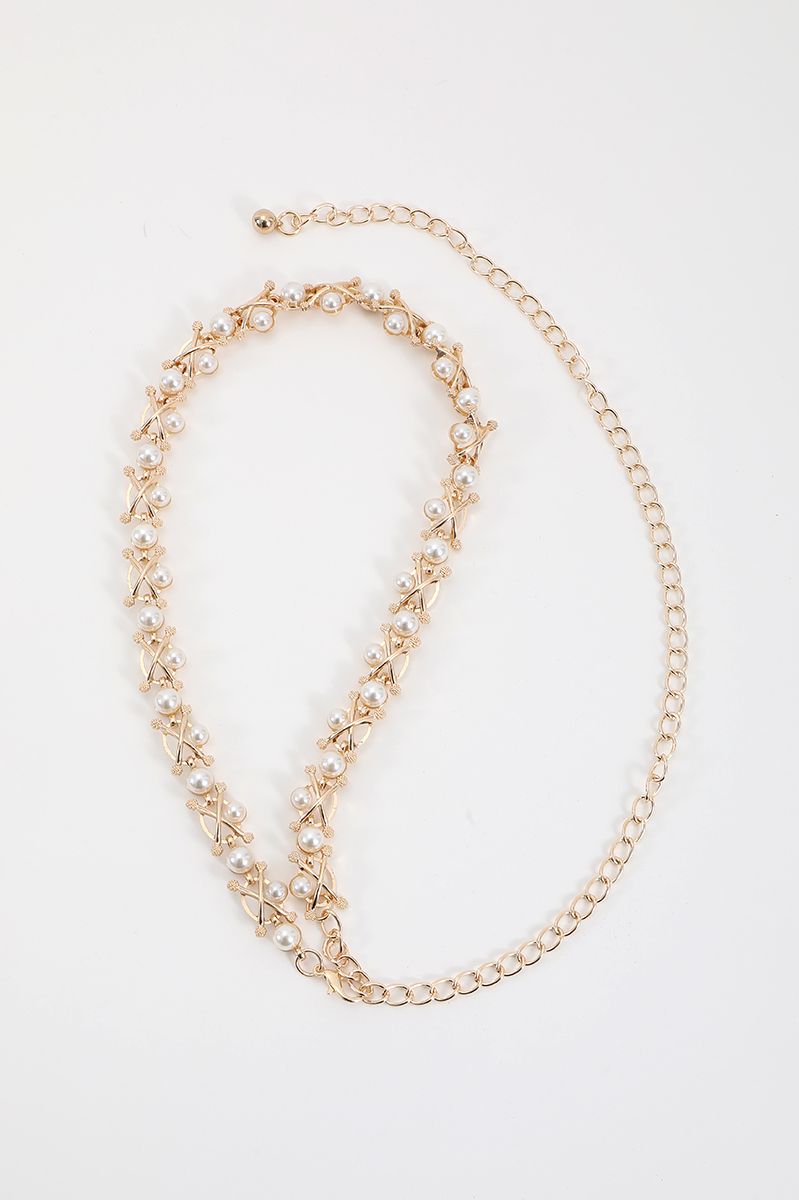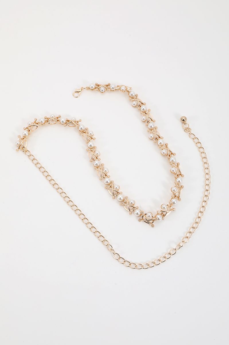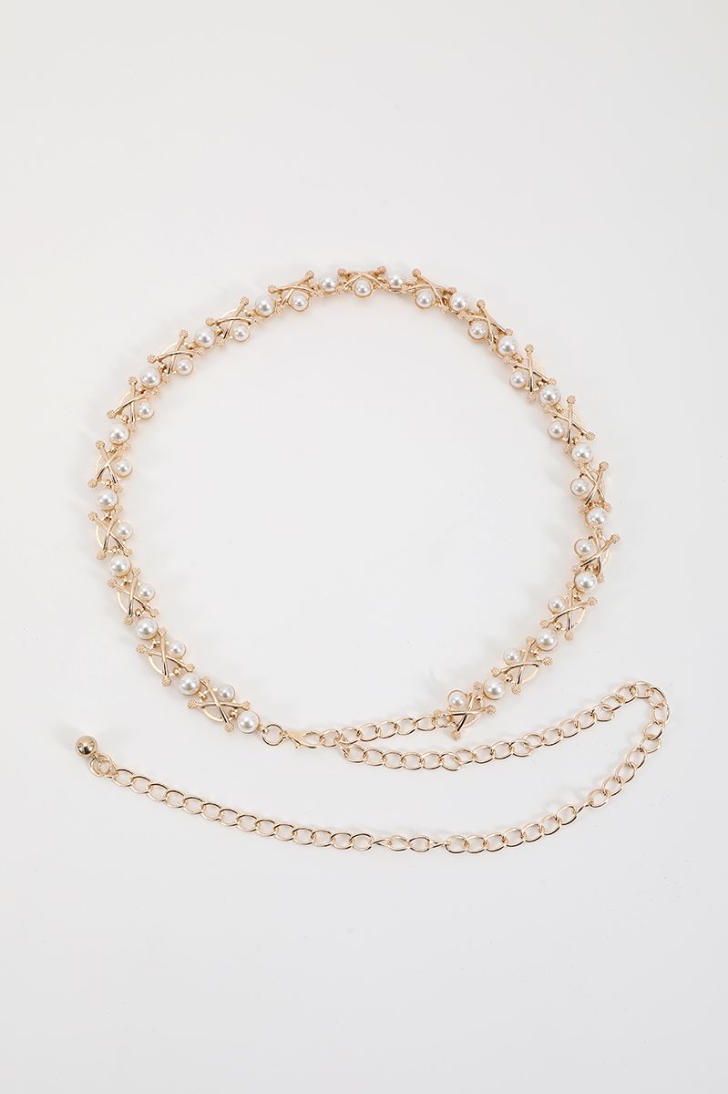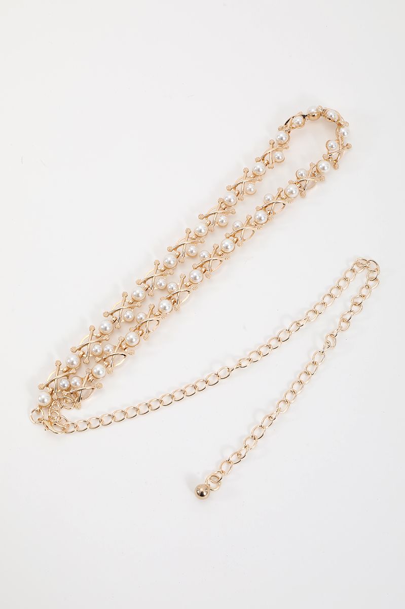 مزين بتفاصيل خرز لؤلؤي الشكل متدلية