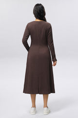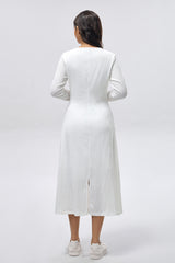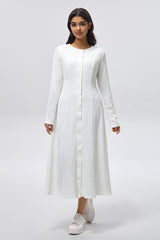 فستان ميدي أنيق بتصميم عملي مزود بأزرار كاملة من الأمام وأكمام طويلة لراحة الاستخدام اليومي. مصنوع من قماش بنسيج ناعم مع قصة متسعة بخفة تمنح حرية الحركة ومظهراً أنيقاً. مناسب للإطلالات اليومية، العمل، أو الخروجات البسيطة.
