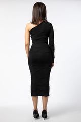 فستان نسائي تحت الركبة بكم طويل وكتف مكشوف