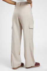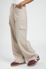 تألقي بإطلالة عصرية وعملية مع بنطلون واسع الأرجل بتصميم بسيط وأنيق. مزوّد بجيوب أمامية عملية وجيوب جانبية بغطاء على كلا الساقين، مع إغلاق بزر وسحاب عند الخصر لثبات وراحة طوال اليوم.